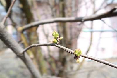 かりんの花はまだ気配がありませんねえ。