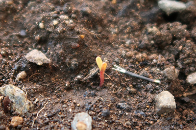 さて、先日ポットに蒔いた種から目が出ました!