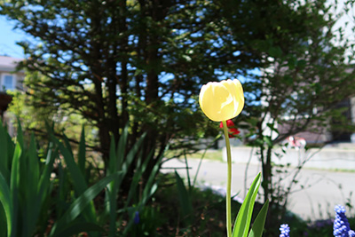 赤いチューリップの手前にあった蕾のものは、白かと思っていたら黄色でした。