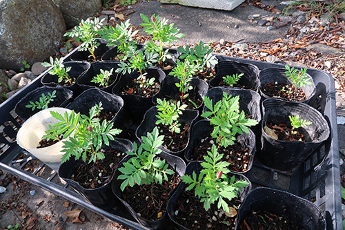 5月下旬にマリーゴールドの苗を間引きしました。