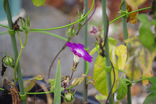 あの古い家に咲く朝顔に対して昨年までは「そろそろ片づけたほうが・・・」なんて勝手なことを思っていたのに、今は「まだ咲いてる!」と見る目も変化しました。