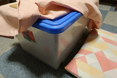行き場に困っていた収納ケースが、部屋の中央で役にたつなんて素晴らしいですね。