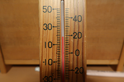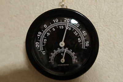 ストーブの温度計を見ると、室内温度は15度です。