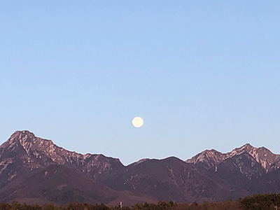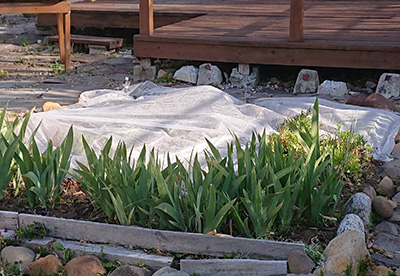 帰宅後綺麗な月に見守られながら、せっせと花壇に不織布シートをかけていきました。
