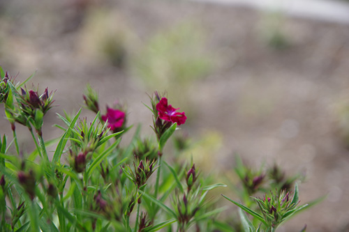 その中の宿根草の撫子は株が大きくなって花をつけ始めました。