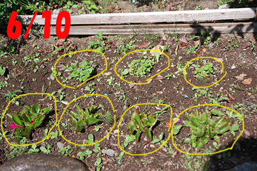 周囲の雑草たちはグングン大きくなり増えていくのに、花の苗たちは「沈黙」。