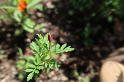 以下は、去年の零れ種から芽が出たマリーゴールド。