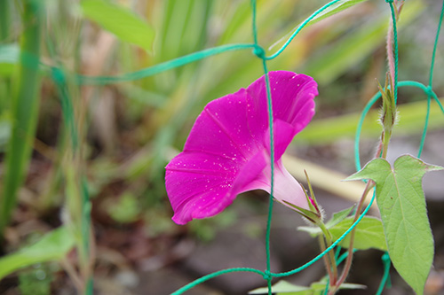 ポツリポツリと思い出したかのように、のんびりゆっくり咲く朝顔さん。